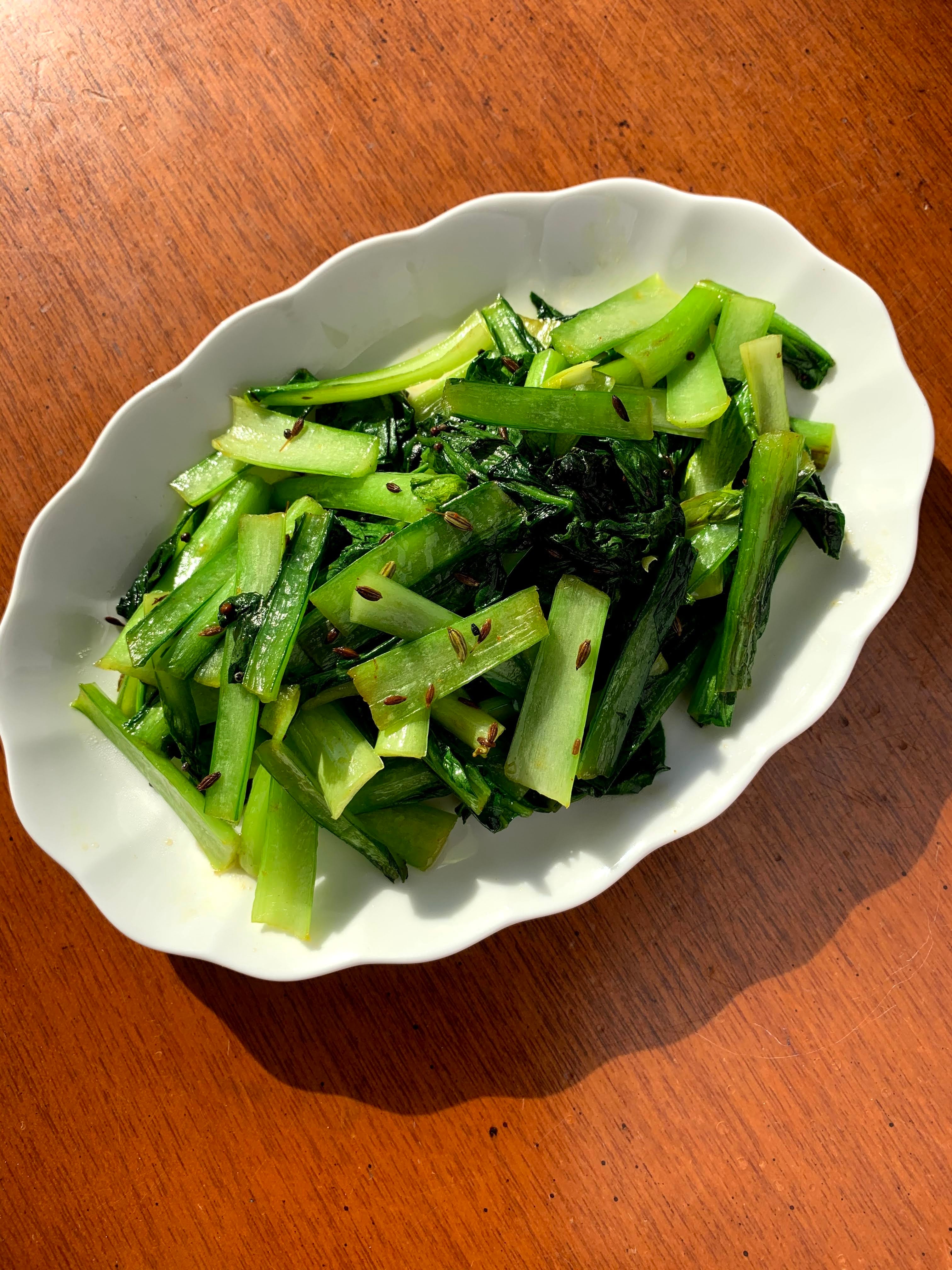 スパイスでさっと炒めた青菜料理がおいしく作れるスパイスとレシピをお届けします。