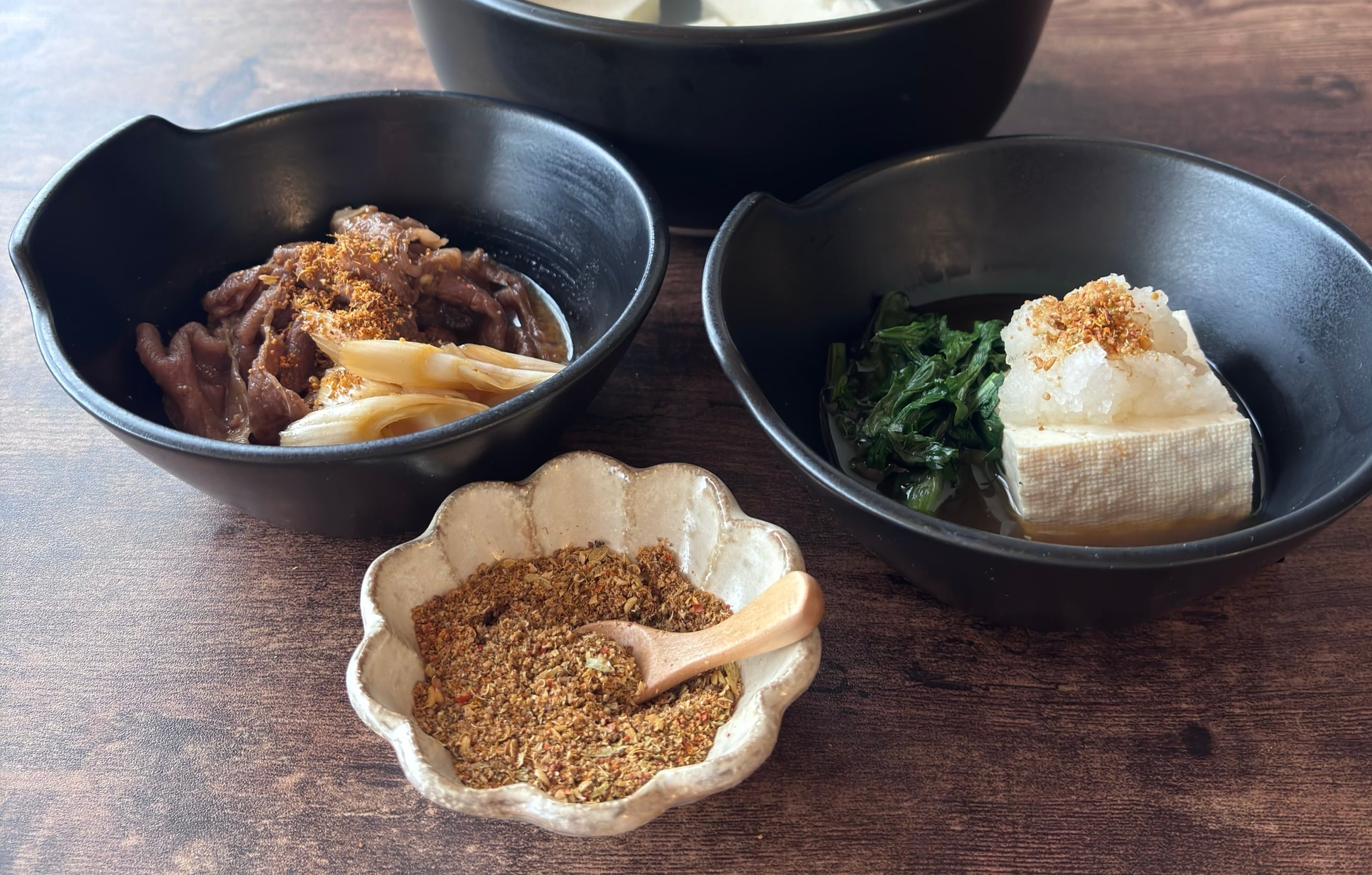 鍋などに使用できる7種のミックススパイス。湯豆腐のポン酢に合わせたり、すき焼きのお肉にもバッチリです。my spice オリジナルの味を是非お試しください。
