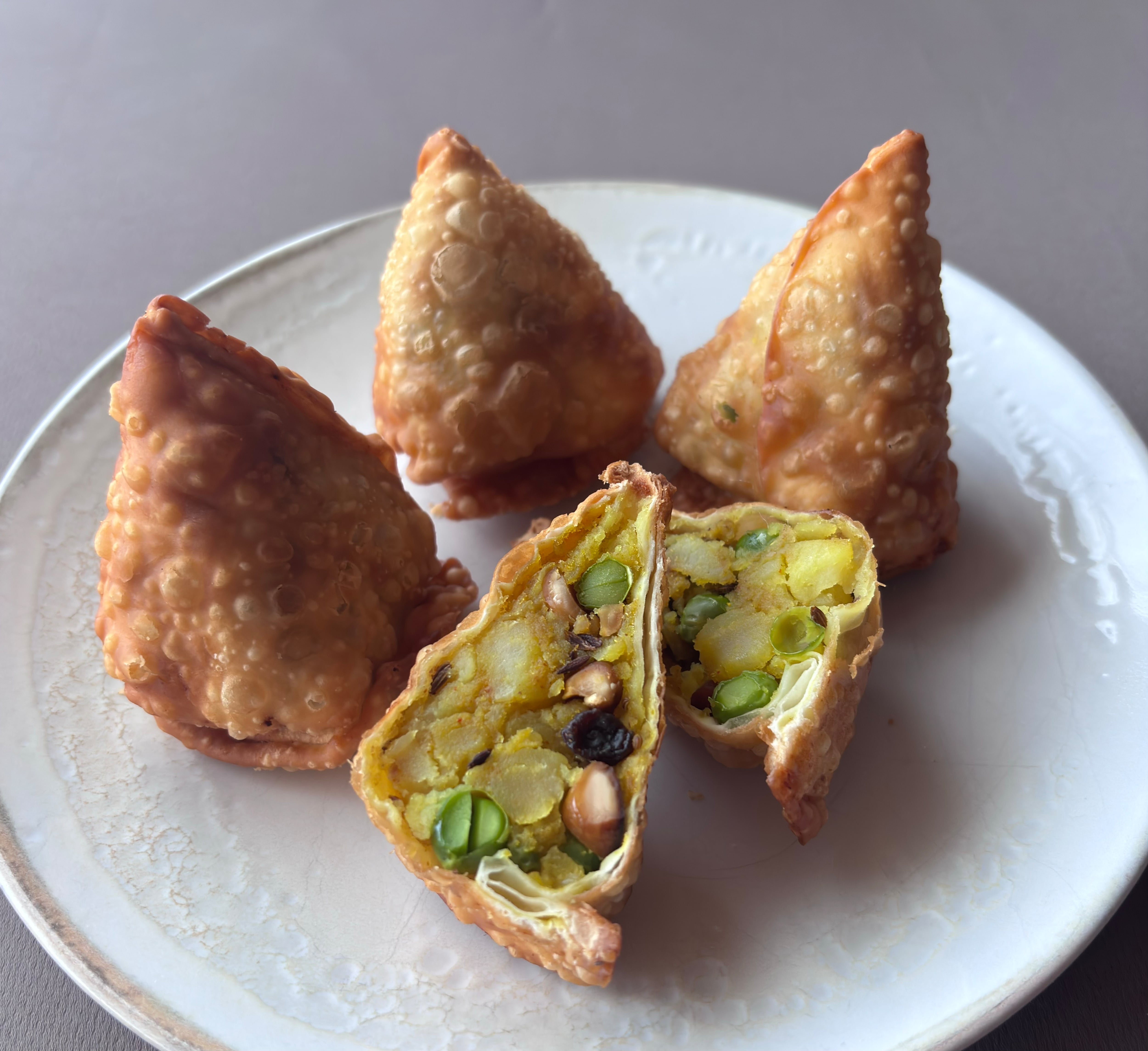 カリッと揚がった三角のサモサは、おなじみの皮で作れるから意外と手軽なんです。じゃがいもで作るフィリングがとにかく絶品。手作りだからこそ具材にこだわるのがおすすめです。包むのが面倒なときは中身だけを副菜にしても大満足。