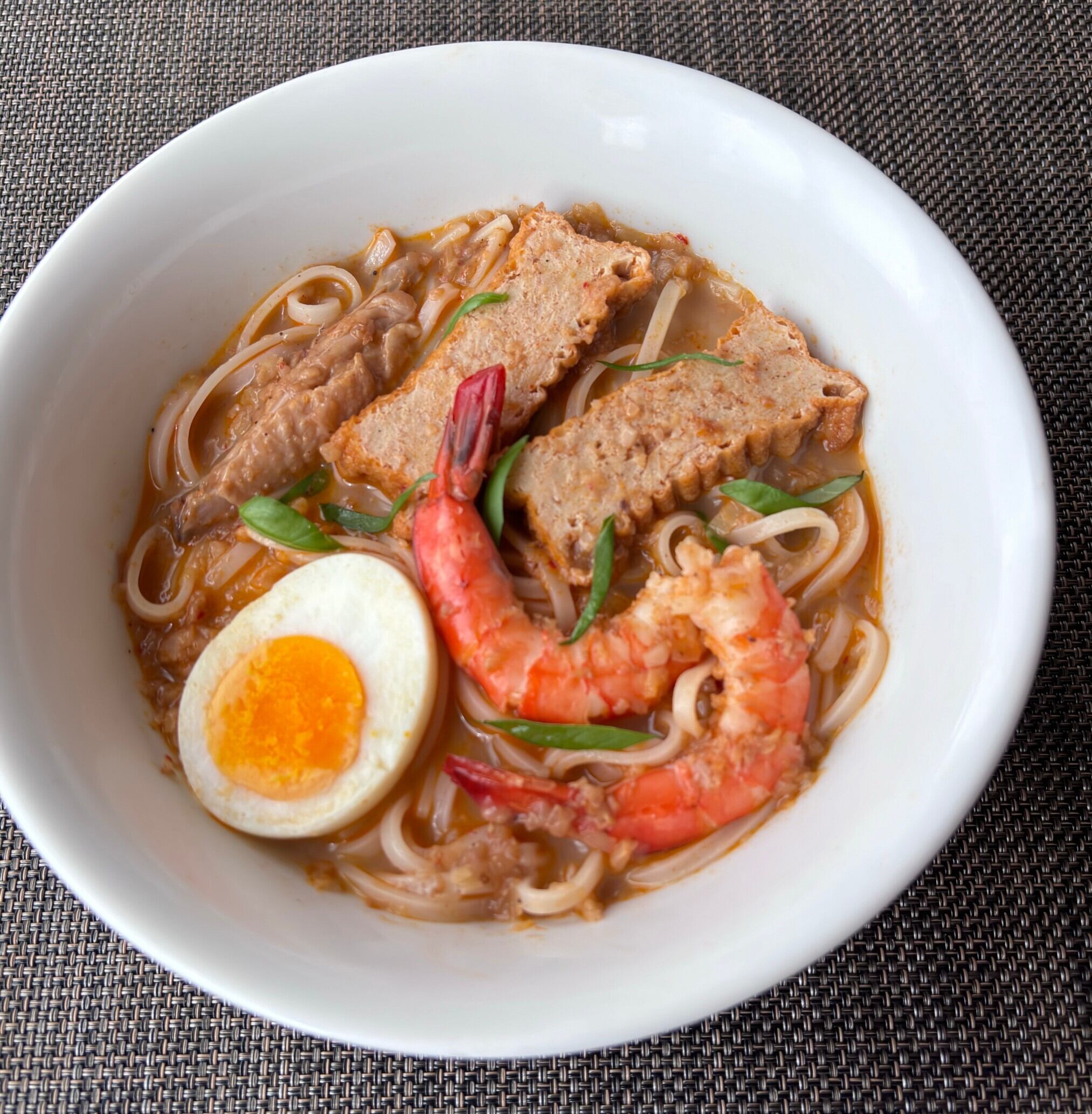 マレーシアやシンガポールの麺料理。スープや具材の種類は地域によって様々。my spiceのラクサは、海老、スパイス、ココナッツの旨味を取り入れたアレンジレシピです!どんな味わいかお楽しみに。