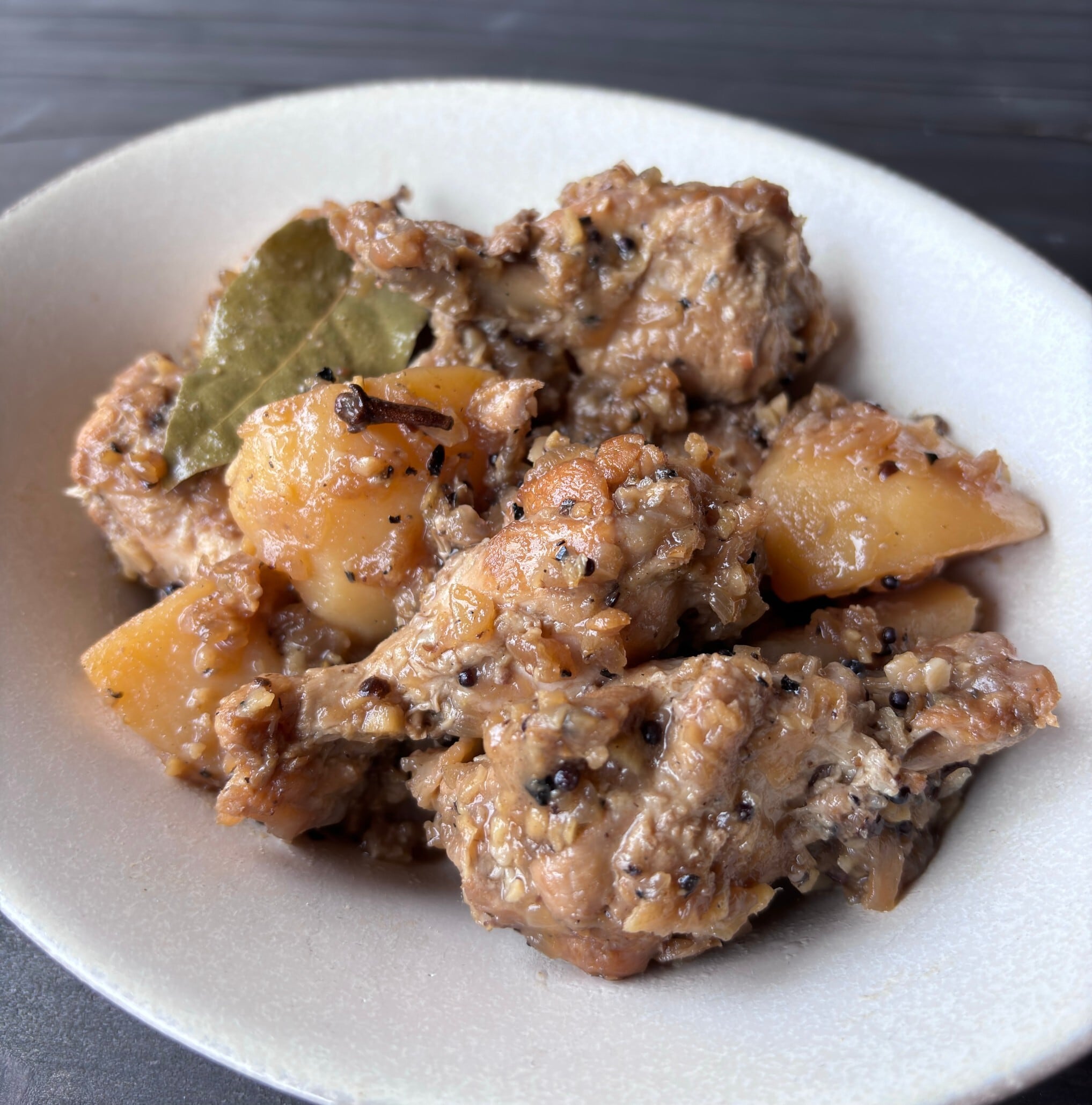 フィリピンの煮込み料理。ブラックペッパーのピリッと感とバランスの良いスパイスを合わせたレシピです。酢や醤油を使うので日本人好みの仕上がりに。心地良い酸味は夏にぴったりです。